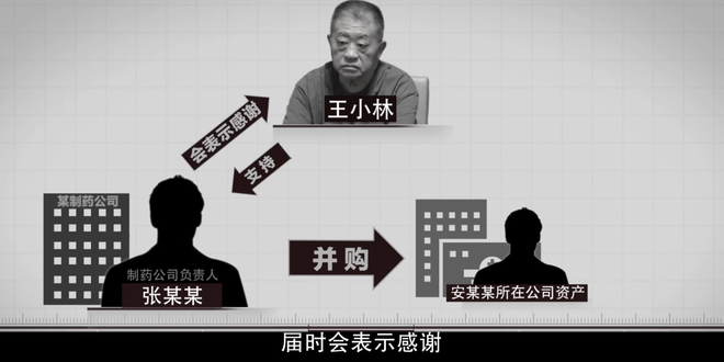 2013年,担心失去总经理权力的安某某反对与某国企的兼并重组,与某制药公司负责人张某某私下议定,共同劝说王小林改变之前决定。随后,张某某开始有意识接近和围猎王小林。王小林经不住诱惑,转而支持由张某某制药公司对该公司的并购,获得安某某、张某某所送巨额财物。整个涉案金额高达1.56亿元。
