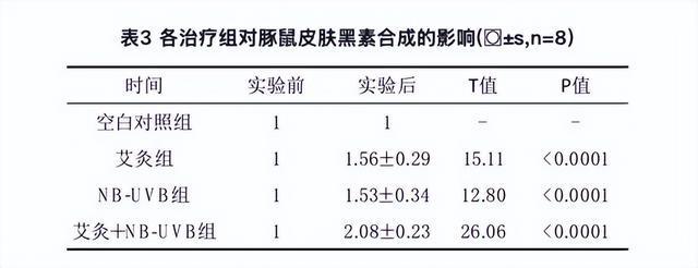 另外,国内也有一项用豚鼠做的实验研究,通过观测艾灸对棕黄色豚鼠皮肤色素沉着的影响,也能证明这一结论。