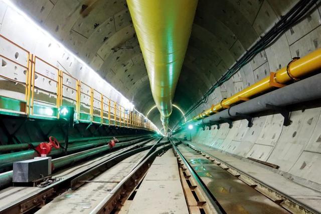 中图:“北气南下”能源大通道长江盾构穿越工程隧道内景。
