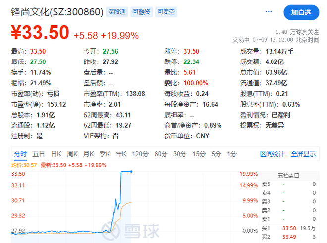 7月9日,受此消息影响,多只与周杰伦相关的概念股大涨。港股巨星传奇(06683.HK)盘中放量大涨100%,截至午间收盘该股涨70.63%,报10.92港元/股,总市值93.88亿港元。