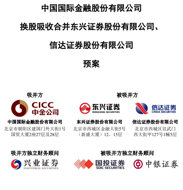 中金公司并购重组预案出炉,东兴证券、信达证券将合并,三家公司联合复牌
