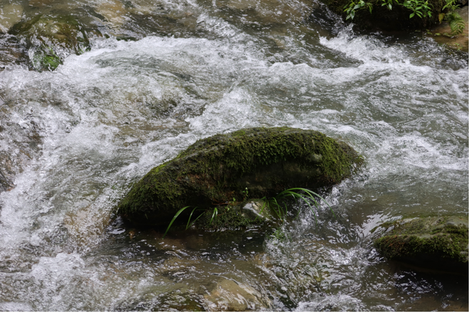 山螃蟹的生存,全依赖于澄澈的溪水和密集的岩石。而湘西的涧水,是山魂的吐纳。它源自云雾缭绕的峰顶,万古以来涓滴不息,沿着嶙峋的石壁蜿蜒而下,最终汇聚成溪。溪水既切割着山谷,也悄然切割时间,将嶙峋的岩石打磨成浑圆的卵石,铺满整个河床。因发源于高处,又得两岸茂密草木的荫蔽,这里的溪水清冽彻骨,即便在酷暑时节,仍凉意袭人。而水底的沙砾洁净无瑕,石隙间氧气充盈,偶尔有腐叶飘落其中,便成为滋养之源。此外,山溪清澈,水流时急时缓,石隙深邃,因此,湘西的山涧成为是山螃蟹栖息繁衍的理想家园。