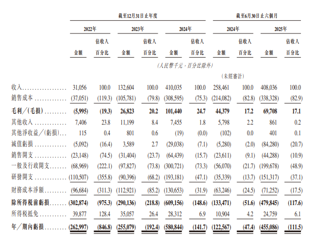 毛利率从2022年的-19.3%改善至2024年的24.7%,2025年上半年降至17.1%。