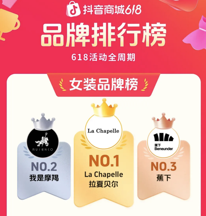 不过,注意到,随着重整计划,拉夏贝尔的主战场也从线下逐步向线上业务模式转移。今年6月,拉夏贝尔以抖音“618”女装冠军身份回到大众视野。