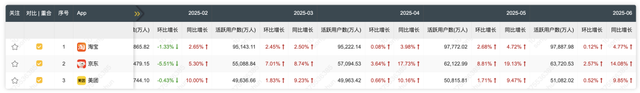 QuestMobile数据显示,此前两个月活跃用户数都有环比下降的淘宝、京东、美团App,自今年3月以来,均呈现了较高比例的同比和环比增长,特别是京东,4—6月的活跃用户数同比增长均达到了双位数。