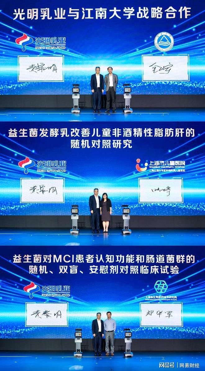 同时,光明乳业分别与上海市儿童医院消化感染科主任张婷、上海市生物医药技术研究院郑华军研究员签署了项目合作协议,未来将共同开展“益生菌发酵乳改善儿童非酒精性脂肪肝的随机对照”研究、“益生菌对MCI患者认知功能和肠道菌群的随机、双盲、安慰剂对照”临床试验等,深化产学研融合,破解行业难题,也为市场提供更多新品。