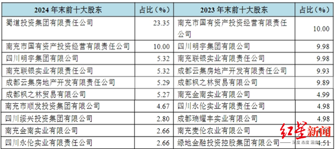 ▲四川天府银行前十大股东变动情况,图源:公司2024年年报