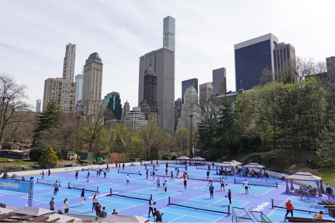 2023年春,美国纽约中央公园举办大型匹克球比赛。近年来,匹克球成为美国发展最快的运动,目前全美已有近万个匹克球运动场 图/中新图片 中新社记者 王帆 摄