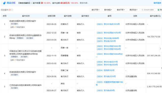 天眼查显示,启迪科服目前已经深陷各种司法诉讼中,牵涉至少20多起司法案件,其中约50%为金融借款合同纠纷,债权人包括中国进出口银行、招商银行、中信信托等金融机构。目前启迪科服已经被限制高消费。