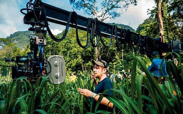 导演加里斯·爱德华兹在电影《侏罗纪世界:重生》拍摄现场。