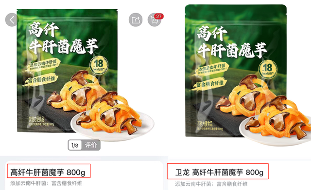 此外,还有细心的网友发现,山姆一款名为“高纤牛肝菌魔芋”的产品虽由卫龙生产,可商品图片上却不见卫龙品牌标识,疑似“有意弱化该品牌”。