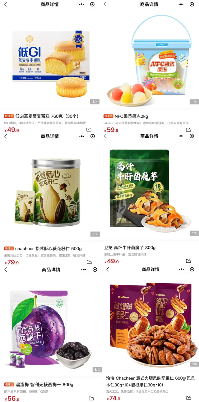徐福记、喜之郎、卫龙、溜溜梅等“童年品牌”也都换上洋气的马甲:低GI燕麦藜麦蛋糕、NFC果浆果冻、松茸酥心葵花籽仁、高纤牛肝菌魔芋、智利无核西梅干、法式小泡芙、意式火腿风味坚果仁……名称高级、包装洋气,但难掩“似曾相识”的熟悉味道。