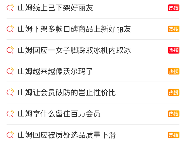 与山姆有关的部分热搜话题 | 图源:微博
