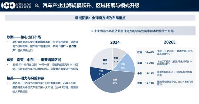 车百会研究院数据显示,欧洲是高价值新能源车型的重要增量市场,但受关税政策、碳边境调节机制影响,整车出口增速放缓,转向“建厂+合作生产”替代单纯出口。
