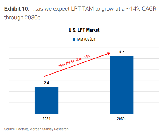 据追风交易台,摩根士丹利墨西哥分部分析师Jens Spiess联合全球多个地区团队发布研报,核心判断是:美国电网正在经历一场供需错配,供需严重失衡局面将至少持续至2030年,大型电力变压器(LPT)市场规模将以约14%的年复合增长率扩张,为相关生产商带来持续数年的超额利润窗口。